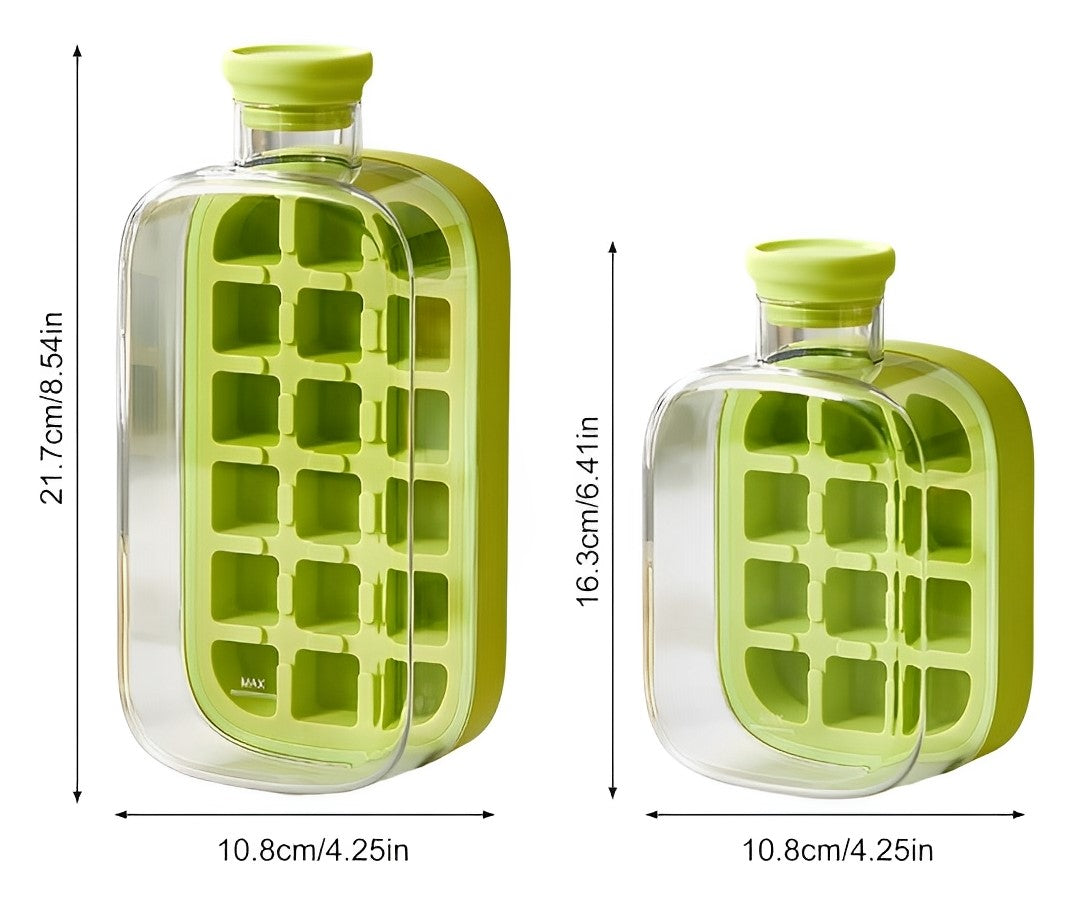 The bottle includes a built-in ice cube tray. Just fill the tray with water, freeze it, then push the ice cubes directly into the bottle for instant cooling.