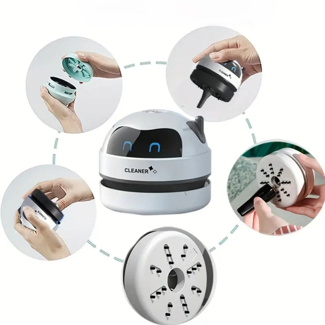 The mini vacuum cleaner is rechargeable via a USB cable. Simply connect it to a power bank, laptop, or adapter, and wait until it’s fully charged.